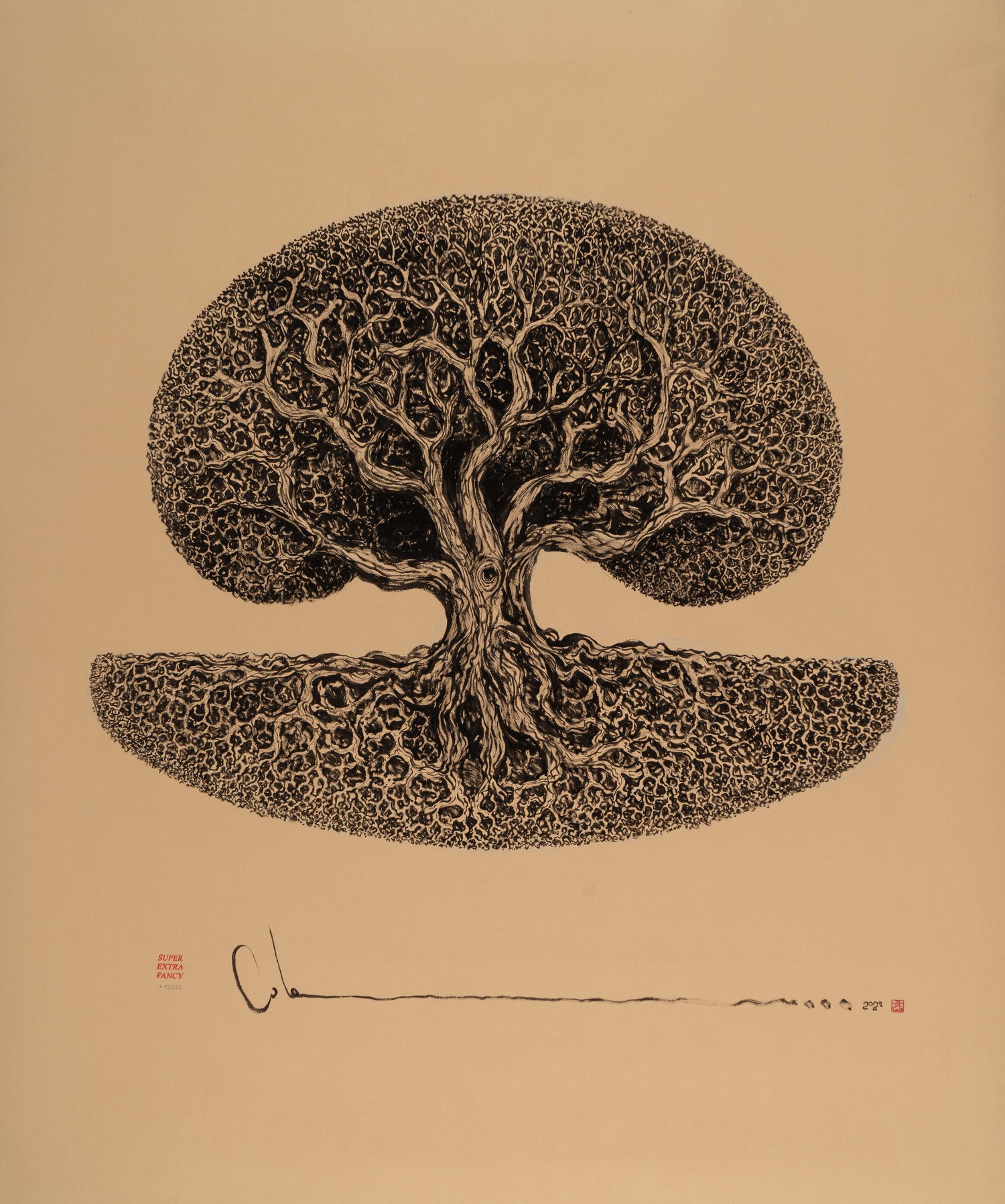 SXL. #2502 Oak Tree Drawing (50x50") Poster Frame Included !!!
