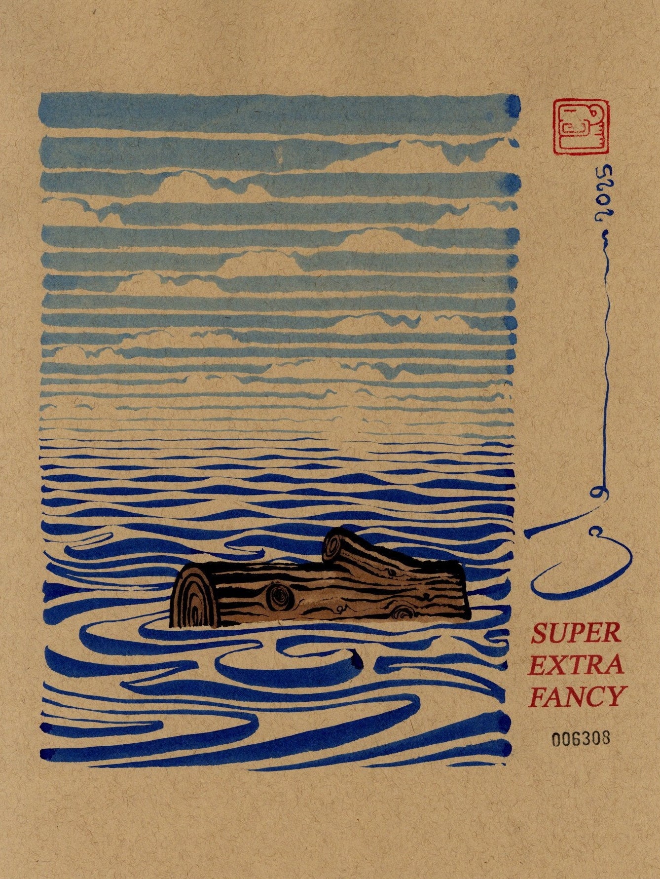 S. Floating Log (9x12") Hand-Drawn to Order !!!
